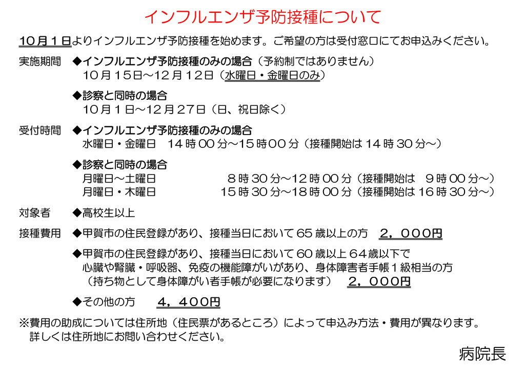 インフルエンザワクチン接種について