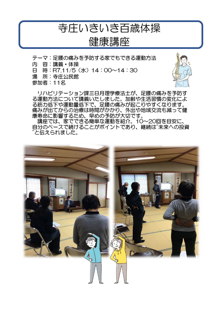 出前健康講座(足腰の痛みを予防する家でもできる運動方法)